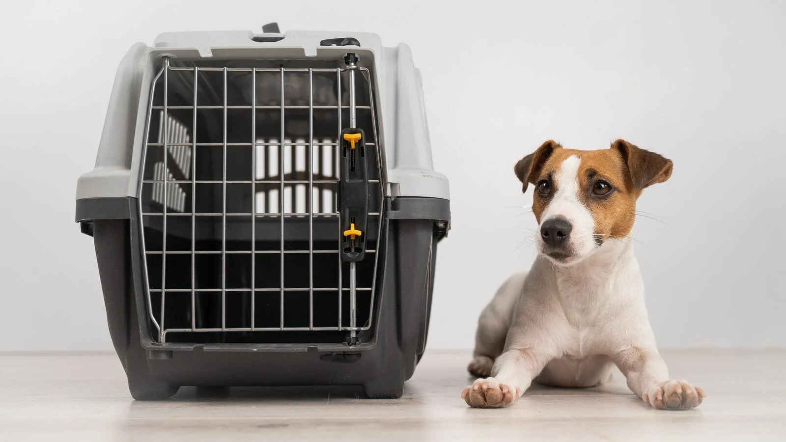 (A dog lies next to a large carrier crate, an essential supply for shelters during crisis. Pic: Freepik)