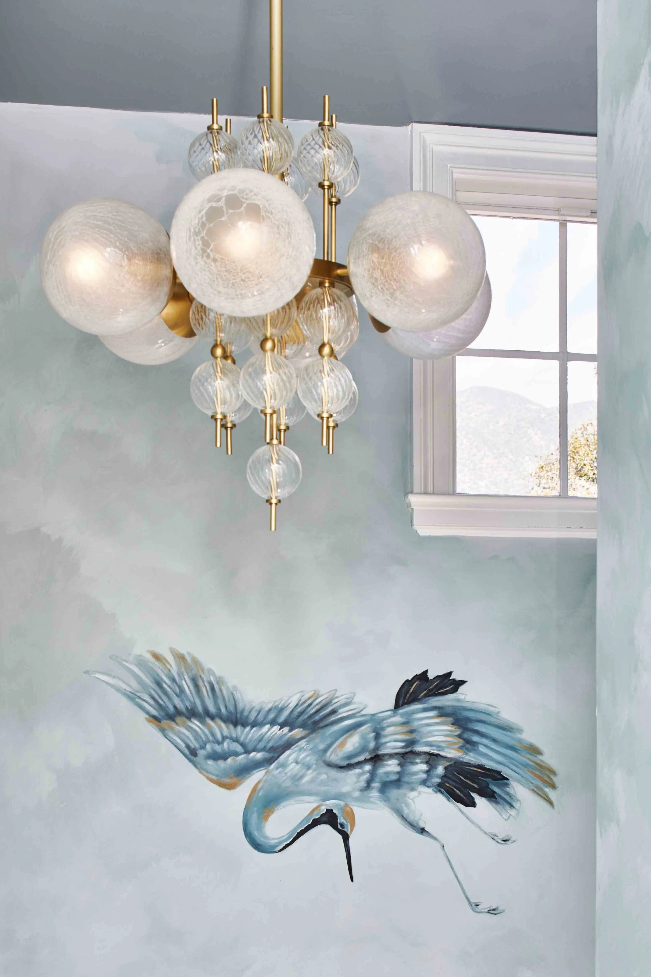 Whimsical nature-inspired mural for “The Foyer of Enchantment,” designed by interior desginer Rachel Scheff.